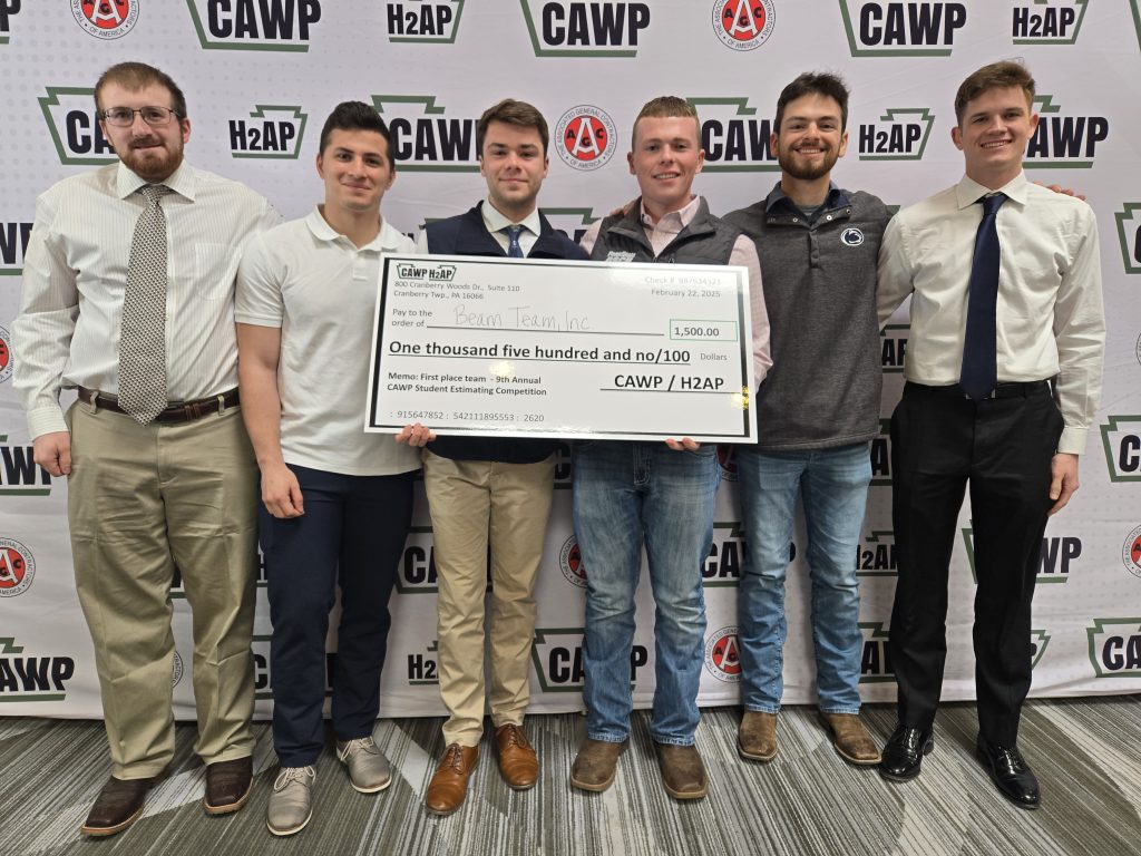 CAWP hosted the 9th Annual CAWP Student Estimating Competition February 20 – 22, 2025. Eleven teams from seven universities participated in this competition, which was developed to showcase the benefits and opportunities the heavy-highway construction industry has to offer. It was an exciting two days with teams from Bucknell University, Carnegie Mellon University, Penn State University – Harrisburg, Penn State University – University Park, University of Pittsburgh, University of Pittsburgh at Johnstown and West Virginia University participating in the competition.