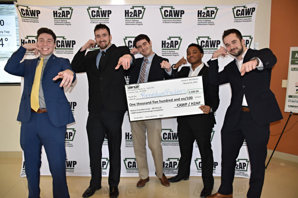 CAWP hosted the 4th Annual CAWP Student Estimating Competition at the Regional Learning Alliance. Nine teams from five universities participated in this competition, which was developed to showcase the benefits and opportunities the heavy-highway construction industry has to offer. It was an exciting two days with teams from Carnegie Mellon University, Penn State University – University Park, Penn State University – Harrisburg, University of Pittsburgh, and University of Pittsburgh at Johnstown participating in the competition.