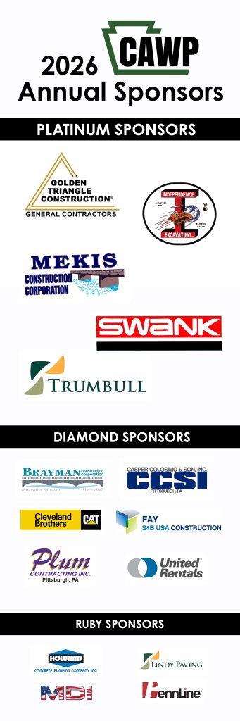 CAWP and H2AP members gathered and celebrated the heavy/highway construction industry on Friday, January 9, 2026, at Acrisure Stadium. More than 700 attendees enjoyed an extended Monte Carlo-style reception featuring food and drinks, followed by a ceremony honoring several individuals who have made a significant impact on the industry.